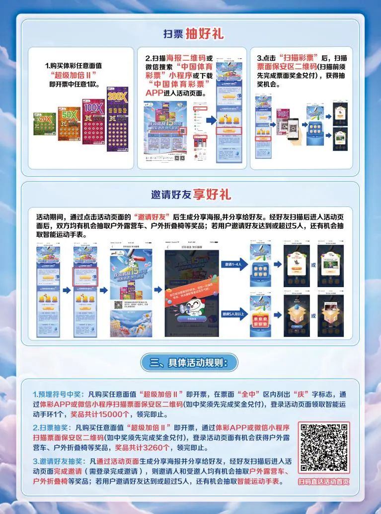 3.全國(guó)促銷活動(dòng)細(xì)則,詳見“中國(guó)體育彩票”APP、微信小程序活動(dòng)頁(yè)面,或登錄中國(guó)體彩網(wǎng)查詢相關(guān)信息。