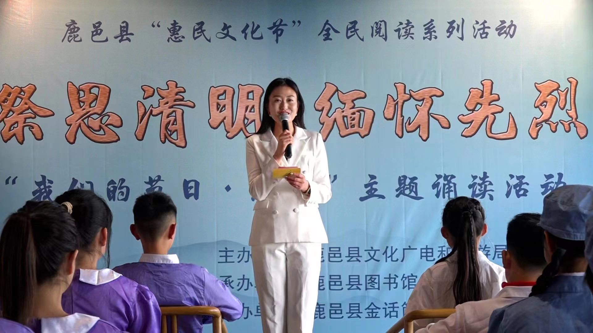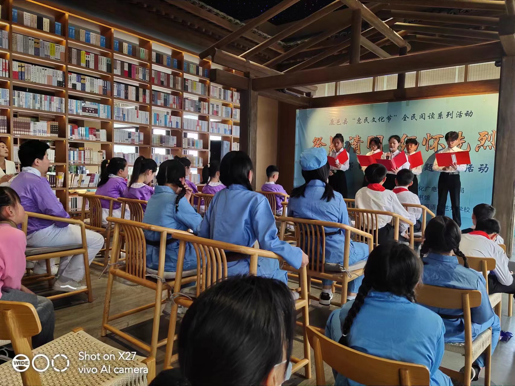 活動由該縣文化廣電和旅游局主辦,縣圖書館承辦,旨在緬懷追憶革命先烈英雄事跡,持續(xù)深化“惠民文化節(jié)”全民閱讀系列活動,向青少年學生普及清明節(jié)文化知識。當日,在該縣圖書館三樓,縣圖書館工作人員講述全縣部分革命先烈英雄事跡和悲壯故事;縣文化廣電和旅游局工作人員講解清明節(jié)由來、清明節(jié)習俗、清明節(jié)為什么要文明祭祀、清明節(jié)為什么要祭祀和掃墓等知識;身著“小八路軍裝”的青少年學生依次登臺,聲情并茂地朗誦《中國人清明節(jié)》《清明的雨》《我愛你中國》《鄉(xiāng)愁》《清明詩詞》《不朽》《青松禮贊》《穿越時空的對話》等經典詩詞,表達對革命先烈的無限崇敬和緬懷。