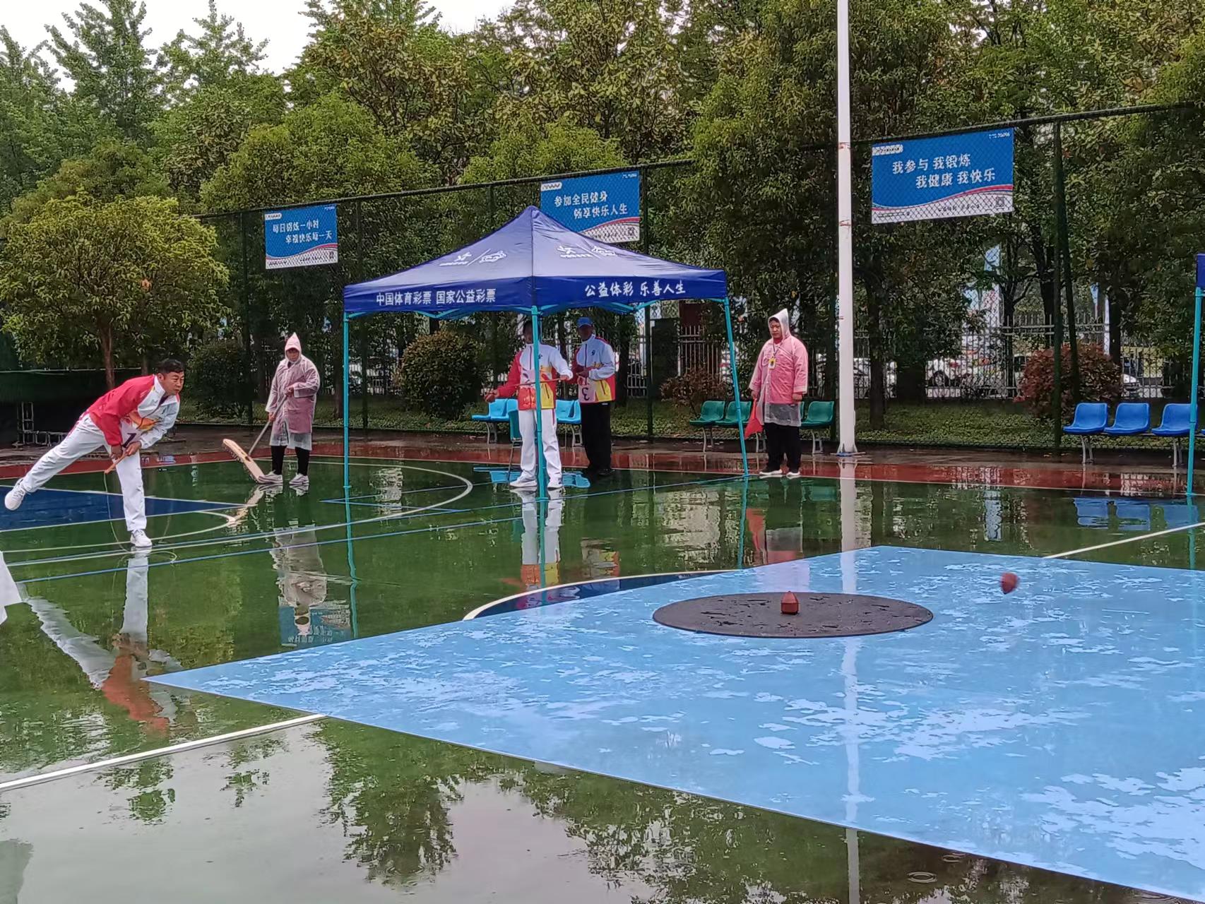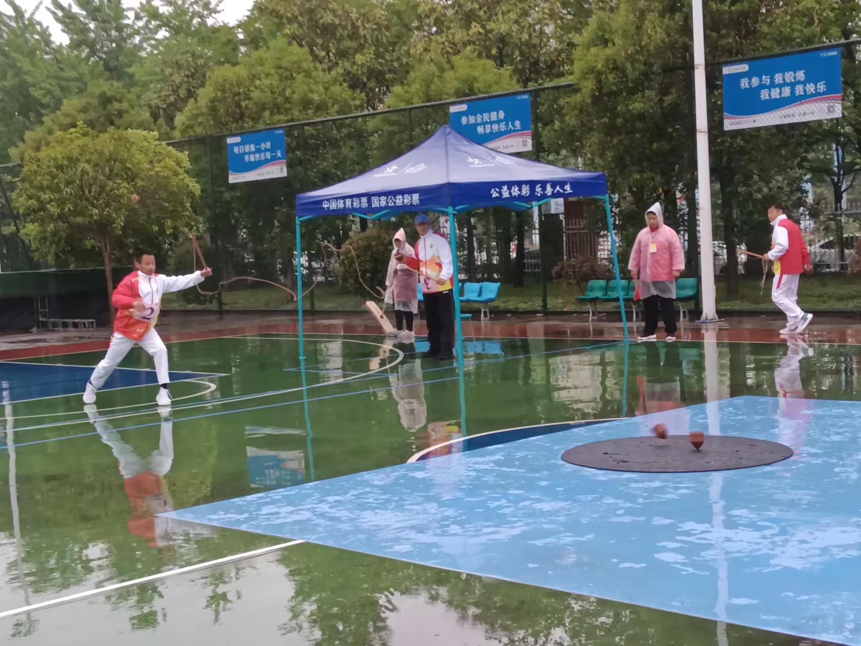 4月23日,在細(xì)雨蒙蒙中,河南省第九屆少數(shù)民族傳統(tǒng)體育運(yùn)動(dòng)會(huì)陀螺項(xiàng)目在市體育中心籃球場(chǎng)拉開(kāi)比賽帷幕。