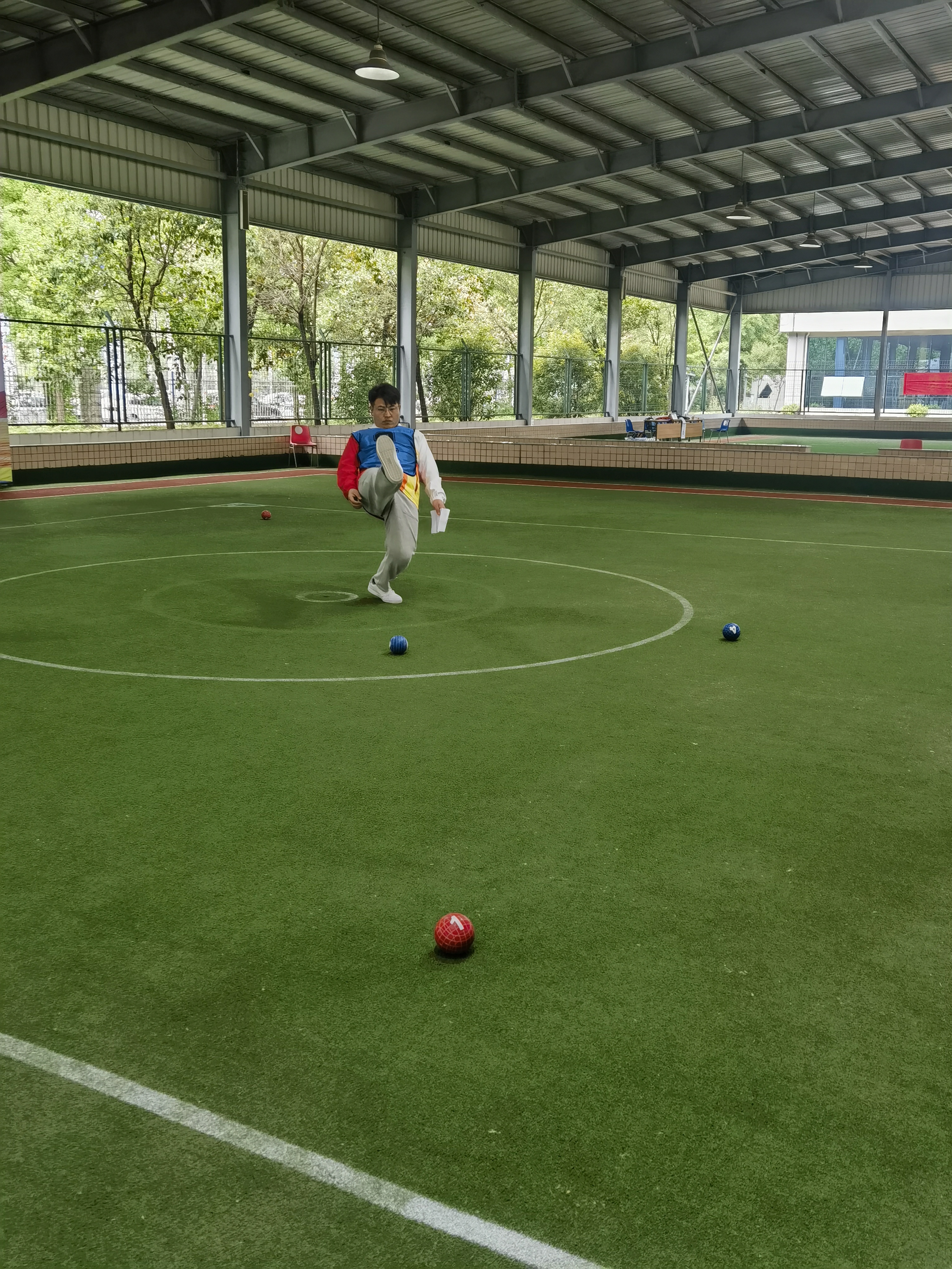 上午11時(shí)40分,在蹴球項(xiàng)目男子單蹴的決賽現(xiàn)場,周口代表隊(duì)與南陽代表隊(duì)決賽正如火如荼地進(jìn)行。隨著觀眾陣陣喝彩,周口代表隊(duì)運(yùn)動(dòng)員劉風(fēng)光以100:91的成績一舉奪冠。與此同時(shí),在相鄰的周口代表隊(duì)與河南城建代表隊(duì)女子單蹴的決賽場也進(jìn)入高潮,最終河南城建代表隊(duì)運(yùn)動(dòng)員趙佳勝出,周口代表隊(duì)運(yùn)動(dòng)員吳思桔和南陽代表隊(duì)運(yùn)動(dòng)員曼孜來·木沙江獲二等獎(jiǎng)。