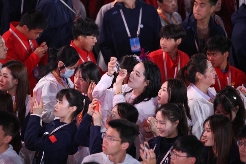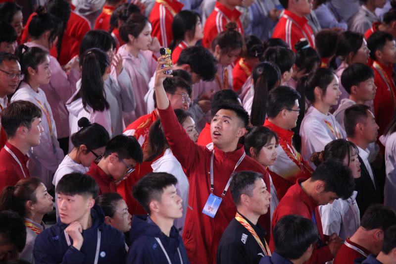 閉幕式上,來自全省各地的運動員用手機(jī)記錄下精彩瞬間。記者 劉俊濤 攝