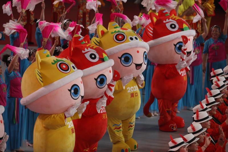 閉幕式上的吉祥物。記者 劉俊濤 攝