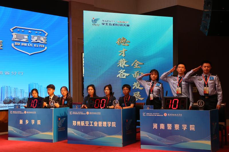 大賽分為個(gè)人必答題、第一輪搶答題、集體必答題、第二輪搶答題和風(fēng)險(xiǎn)題五個(gè)環(huán)節(jié)進(jìn)行。比賽中,來(lái)自全省21所高校的代表隊(duì)共84名選手同臺(tái)競(jìng)技,各代表隊(duì)選手全神貫注、踴躍作答,展現(xiàn)出良好的素養(yǎng)。經(jīng)過(guò)初賽、復(fù)賽、決賽三輪7場(chǎng)激烈的角逐,鄭州航空工業(yè)管理學(xué)院、漯河職業(yè)技術(shù)學(xué)院、黃淮學(xué)院、新鄉(xiāng)學(xué)院、河南警察學(xué)院5支代表隊(duì)從中脫穎而出,成功晉級(jí)河南省大學(xué)生“誠(chéng)信校園行”學(xué)生資助知識(shí)大賽總決賽。