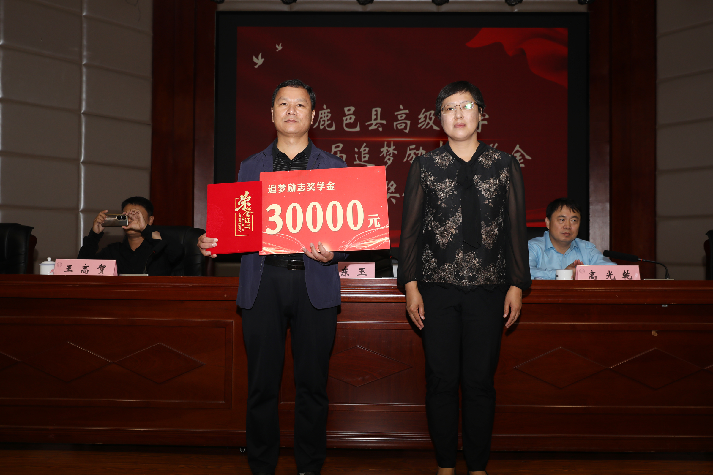 據(jù)了解,鹿邑縣高級中學(xué)追夢勵志獎學(xué)金是2022年由優(yōu)秀校友、暨南大學(xué)教授王高賀發(fā)起,部分校友和社會愛心人士自愿捐贈資金,在學(xué)校設(shè)立的勵志獎學(xué)金,用于獎勵母校優(yōu)秀的學(xué)生和教師團(tuán)隊。此次頒獎儀式共頒發(fā)獎學(xué)金11萬元,周樂樂、張逍遙等40位同學(xué)和高小飛、毛東方等6個班級教師團(tuán)隊獲得追夢勵志獎學(xué)金。在2023年高考中,陳孟康同學(xué)被北京大學(xué)飛行員班錄取,北清部全體教師獲得3萬元名校獎。