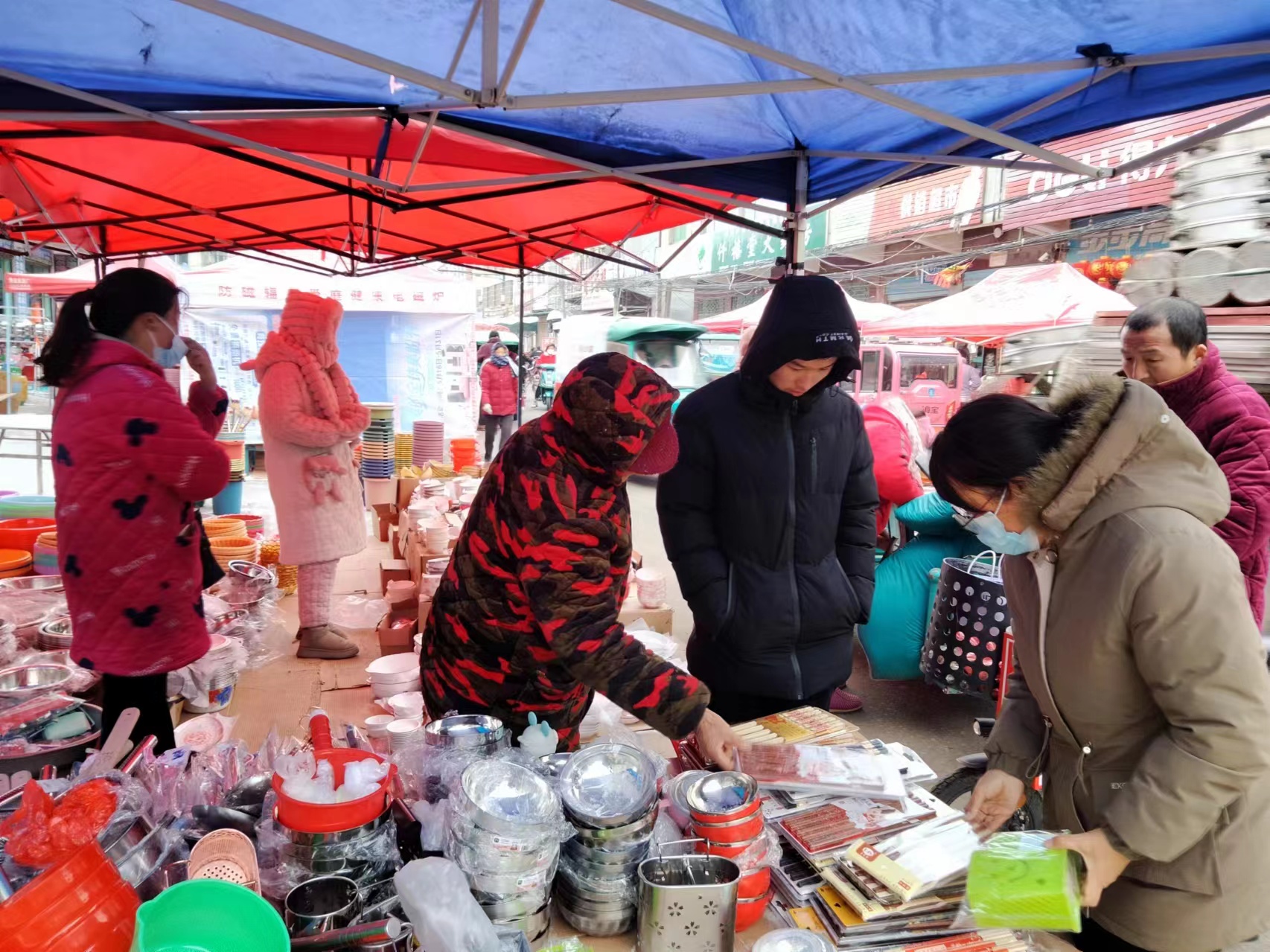 “新年到,真熱鬧,年貨準(zhǔn)備好,幸福樂(lè)淘淘?!痹卩l(xiāng)下的臘月里,趕“年集”是一件很隆重的事。 1月31日,農(nóng)歷臘月二十一,一大早前來(lái)項(xiàng)城市范集鎮(zhèn)集市上備年貨的群眾絡(luò)繹不絕。蔬菜貨品、畜禽肉品、服裝鞋帽、日用百貨、春聯(lián)年畫等經(jīng)營(yíng)區(qū)井然有序,攤點(diǎn)上琳瑯滿目的年貨競(jìng)相“爭(zhēng)俏”,充滿濃濃的年味兒。