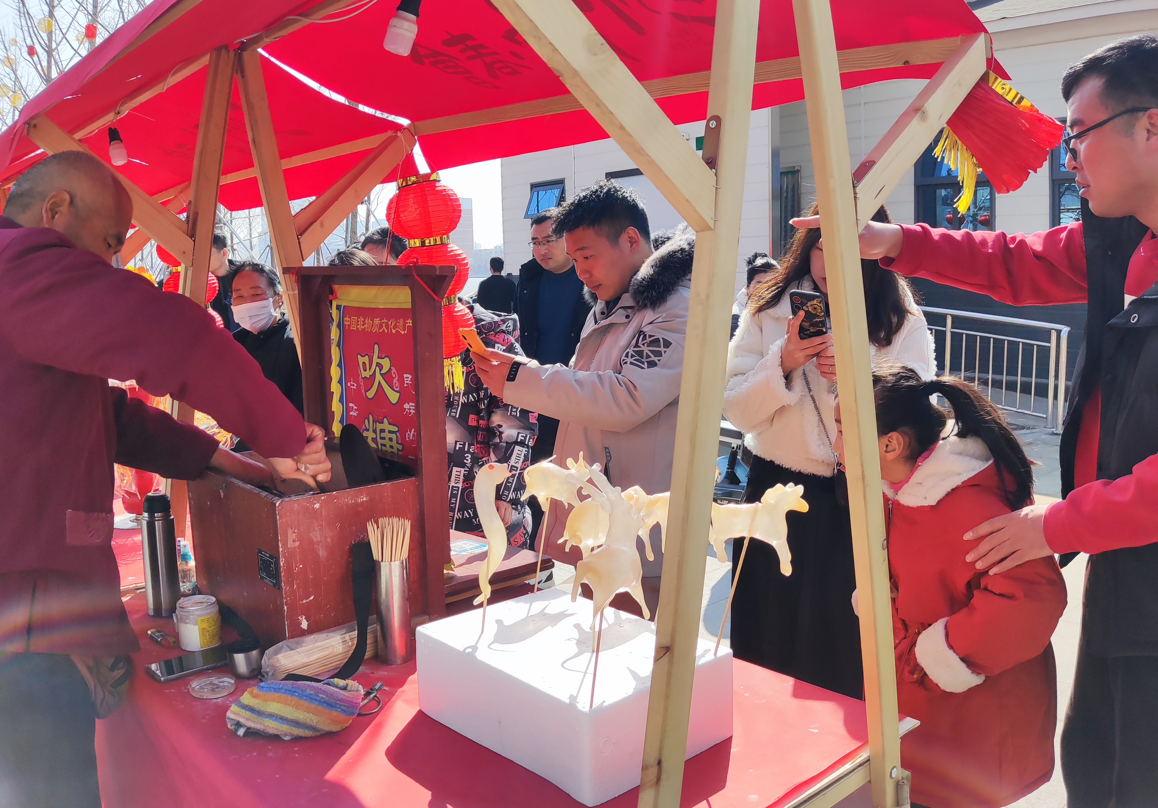 2月12日,“三川十館·春會(huì)”關(guān)帝廟歷史街區(qū)的“古風(fēng)集市”上,人來(lái)人往、熙熙攘攘。布老虎、泥泥狗、剪紙、棕編、草編、糖人等具有周口特色的非遺產(chǎn)品營(yíng)造了濃濃的年味,吸引大量游客前來(lái)欣賞、購(gòu)買。多姿多彩的非遺產(chǎn)品也讓龍年春節(jié)更加具有文化氣息。(記者 王吉城 攝)