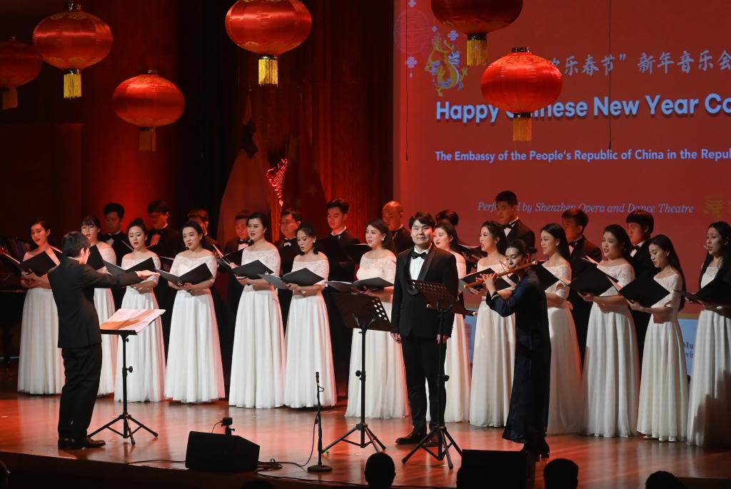 作為西班牙馬德里“歡樂春節(jié)”系列慶?;顒拥囊徊糠?,“中國新春音樂會”日前在馬德里國家音樂廳舉行。從《陽關三疊》等中國詩詞合唱作品,到《敖包相會》《茉莉花》等中國民歌,再到《飲酒歌》等西方音樂選段,深圳歌劇舞劇院合唱團與民樂演奏家合力獻上一臺融合中西經(jīng)典曲目的音樂會。
