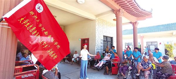 8月16日,鄭州大學(xué)大學(xué)生(左一)為太康縣高賢鄉(xiāng)汪莊村醫(yī)養(yǎng)院的老人們演唱歌曲。當(dāng)日,由鄭州大學(xué)河南音樂學(xué)院、哲學(xué)學(xué)院大學(xué)生王子奇、王子祎、邵彤組成的“三下鄉(xiāng)”服務(wù)小分隊(duì)走進(jìn)該醫(yī)養(yǎng)院,開展“情暖夕陽·愛駐心間”社會(huì)實(shí)踐活動(dòng),為生活在這里的老人們打掃衛(wèi)生、表演節(jié)目,醫(yī)養(yǎng)院里充滿了其樂融融的氛圍。