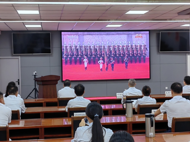 收看過(guò)程中,大家心情澎湃,感慨萬(wàn)千?,F(xiàn)場(chǎng)氣氛莊重而熱烈,大家全神貫注,聆聽(tīng)習(xí)近平總書(shū)記重要講話,滿懷激動(dòng)與自豪的觀看閱兵儀式的全過(guò)程。當(dāng)威武雄壯的三軍儀仗隊(duì)邁著鏗鏘有力的步伐率先通過(guò)天安門(mén)廣場(chǎng)時(shí),當(dāng)一個(gè)個(gè)裝備方隊(duì)展示著彰顯國(guó)家實(shí)力的現(xiàn)代化尖端武器時(shí),當(dāng)戰(zhàn)機(jī)梯隊(duì)以恢宏陣勢(shì)呼嘯掠過(guò)蒼穹時(shí),大家內(nèi)心迸發(fā)出由衷的贊嘆,為祖國(guó)日益強(qiáng)盛而自豪。