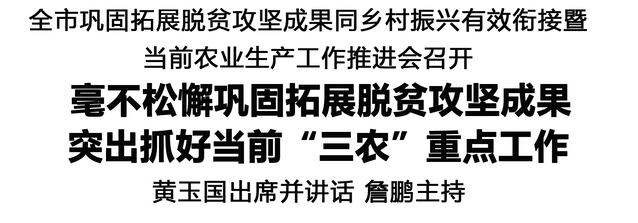 本報(bào)訊(記者 王艷) 11月10日,全市鞏固拓展脫貧攻堅(jiān)成果同鄉(xiāng)村振興有效銜接暨當(dāng)前農(nóng)業(yè)生產(chǎn)工作推進(jìn)會(huì)召開,對(duì)鞏固拓展脫貧攻堅(jiān)成果、抓好當(dāng)前農(nóng)業(yè)生產(chǎn)工作進(jìn)行再動(dòng)員再部署。市委書記黃玉國出席并講話。市長詹鵬主持。