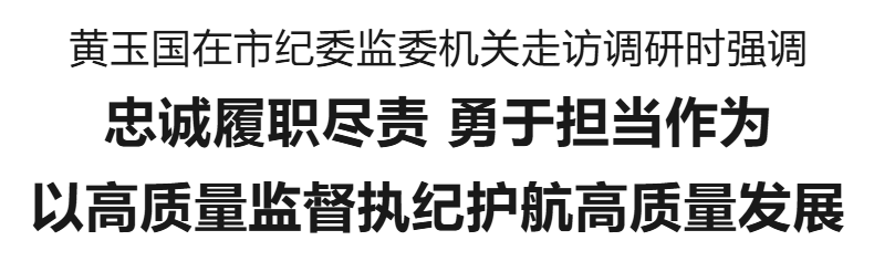 本報(bào)訊(記者 王艷) 12月5日,市委書記黃玉國(guó)到市紀(jì)委監(jiān)委機(jī)關(guān)走訪調(diào)研,強(qiáng)調(diào)要深入學(xué)習(xí)貫徹習(xí)近平總書記關(guān)于黨的自我革命的重要思想和在河南考察時(shí)重要講話精神,忠誠(chéng)履職盡責(zé),勇于擔(dān)當(dāng)作為,不斷推動(dòng)全面從嚴(yán)治黨、黨風(fēng)廉政建設(shè)和反腐敗斗爭(zhēng)向縱深發(fā)展,以高質(zhì)量監(jiān)督執(zhí)紀(jì)護(hù)航高質(zhì)量發(fā)展。