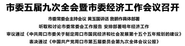 本報(bào)訊 (記者 王艷 李鳳霞 王晨) 12月28日,中國(guó)共產(chǎn)黨周口市第五屆委員會(huì)第九次全體會(huì)議暨市委經(jīng)濟(jì)工作會(huì)議召開。
