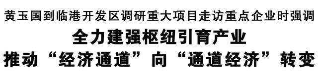 本報(bào)訊 (記者 王艷) 4月1日,市委書(shū)記黃玉國(guó)到臨港開(kāi)發(fā)區(qū)調(diào)研重大項(xiàng)目、走訪重點(diǎn)企業(yè),強(qiáng)調(diào)要瞄準(zhǔn)功能定位,發(fā)揮特色優(yōu)勢(shì),在建強(qiáng)樞紐、引育產(chǎn)業(yè)上下功夫,推動(dòng)“經(jīng)濟(jì)通道”向“通道經(jīng)濟(jì)”轉(zhuǎn)變。