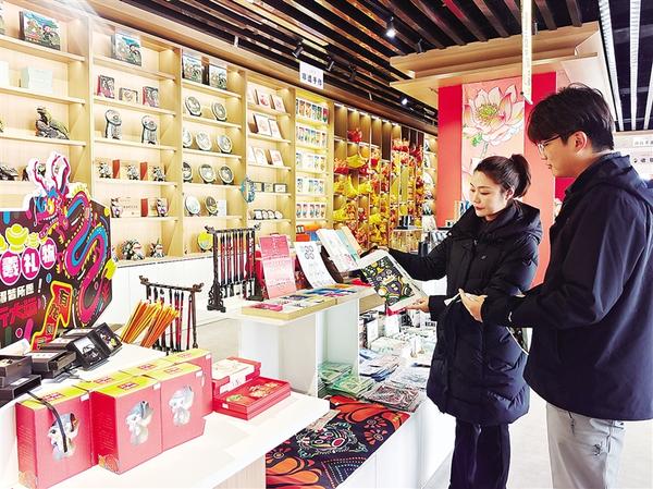 12月18日,在太昊伏羲陵文化旅游區(qū)旅游產(chǎn)品展廳,游客在欣賞非遺手工產(chǎn)品。近年來,太昊伏羲始祖旅游區(qū)運(yùn)營管理有限公司為豐富游客體驗(yàn),聚焦非遺手工、潮玩手辦等主題,開發(fā)了近百個(gè)旅游新產(chǎn)品,以滿足游客多元化需求。 ...[詳細(xì)]