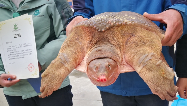 近日,鄲城縣自然資源局接到縣城市管理局公園管理辦公室工作人員救助電話,稱在人民公園岸邊又發(fā)現(xiàn)一只“大老鱉”。接到救助電話后,該局領(lǐng)導(dǎo)立即指派野生動植物保護(hù)和自然保護(hù)地管理股工作人員前往現(xiàn)場救助?!?a href="http://www.beihaikh.com/content/2021-03/23/content_925978.html" target="_blank" >[詳細(xì)]