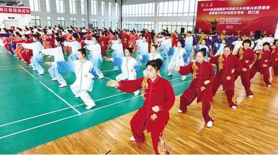 參賽隊(duì)員在比賽中。近日,2025年全國健身氣功助力鄉(xiāng)村振興志愿者服務(wù)暨百城千村展演交流展示活動·周口站在周口市體育中心老年館拉開帷幕,來自我市健身氣功協(xié)會24個(gè)站點(diǎn)的代表隊(duì)及周口高校的5支大學(xué)生參賽隊(duì)共200余人齊聚一堂,在五禽戲、八段錦、大舞、導(dǎo)引養(yǎng)生功十二法四大項(xiàng)目40個(gè)小項(xiàng)中展開精彩角逐。
