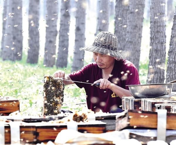 3月31日上午,西華縣李大莊鄉(xiāng)的潁河岸邊,來自遲營(yíng)鎮(zhèn)的蜂農(nóng)在金黃的油菜花、粉嫩的桃花花海中放蜂采蜜,在春光花影中迎來一年中最忙碌的時(shí)節(jié)。