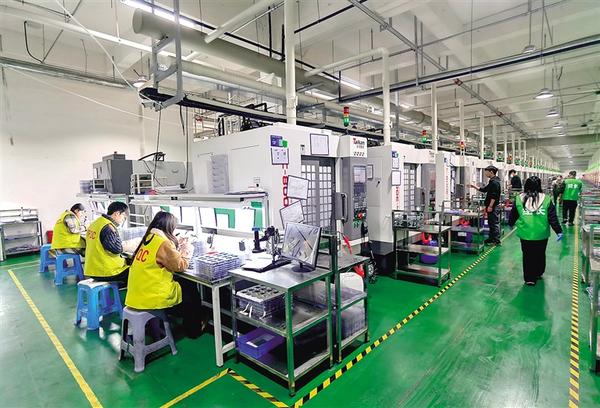 位于西華縣的昌盛年產(chǎn)2000萬套智能零部件項(xiàng)目,主要生產(chǎn)手機(jī)、電腦配套五金和納米注塑制品。目前該項(xiàng)目已投產(chǎn)試運(yùn)營,項(xiàng)目全部投產(chǎn)達(dá)效后,將實(shí)現(xiàn)年納稅500萬元以上,帶動就業(yè)800人以上。圖為工人正在加工訂單產(chǎn)品。