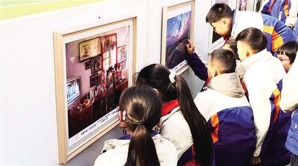 近日,項城市公園路學校的學生在觀看攝影作品。據(jù)了解,自3月10日開始,項城市開展攝影作品巡展進校園活動。