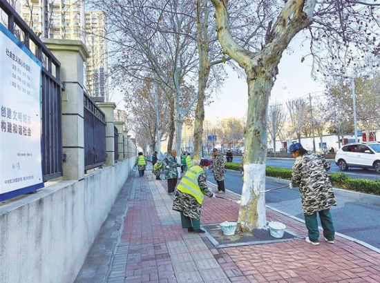 連日來,市園林綠化中心組織專業(yè)養(yǎng)護(hù)人員,對周口中心城區(qū)主次干道及公園內(nèi)的樹木進(jìn)行涂白作業(yè),為它們穿上“防寒衣”,確保樹木安全越冬。