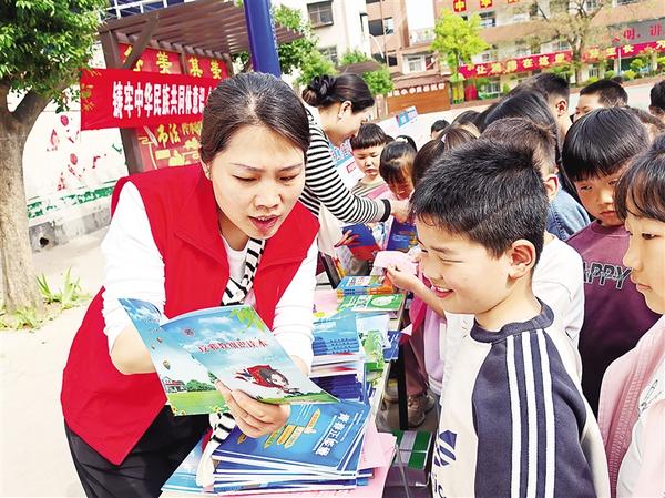 4月9日,志愿者向?qū)W生講解反邪教知識。當(dāng)天,扶溝縣科協(xié)聯(lián)合縣委統(tǒng)戰(zhàn)部、縣民宗局、縣教體局開展“鑄牢中華民族共同體意識暨民族宗教政策法規(guī)宣傳月”活動,為回族小學(xué)師生送去科普圖書及宣傳物品2000余件。