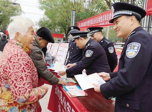 民警向群眾發(fā)放宣傳資料。2024年12月1日~12月7日是第七個(gè)“憲法宣傳周”。為大力弘揚(yáng)憲法精神,營(yíng)造崇尚憲法、學(xué)習(xí)憲法、宣傳憲法、遵守憲法、維護(hù)憲法的濃厚氛圍,連日來(lái),扶溝縣公安局積極組織民警到大程文化廣場(chǎng)開(kāi)展集中宣傳活動(dòng)。