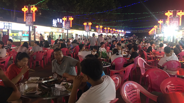 夜幕降臨,花燈初上,位于開發(fā)區(qū)廣場的南廣場夜市漸漸熱鬧起來。