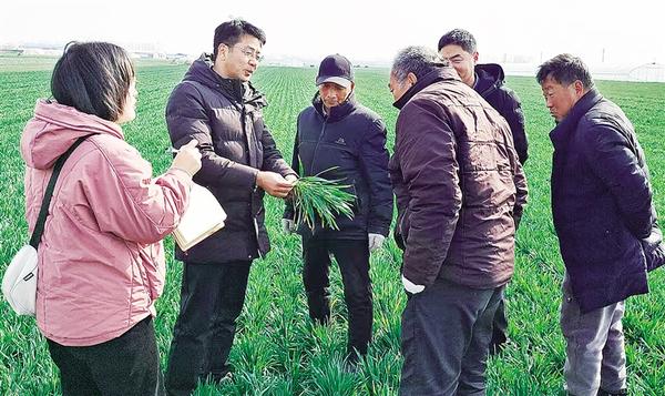 隨著氣溫升高,我市1100多萬畝小麥進入起身拔節(jié)期,各級農(nóng)業(yè)技術(shù)人員送科技到田間,指導群眾開展以“促弱、控旺、防凍、防倒、防病蟲”為重點的春季麥田管理。