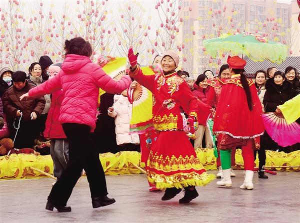 1月30日下午,一名市民興奮地加入到扭秧歌隊(duì)伍中。當(dāng)天,關(guān)帝廟景區(qū)民俗節(jié)目表演精彩紛呈,人們?cè)诠浯簳?huì)、賞民俗中開(kāi)心過(guò)大年。