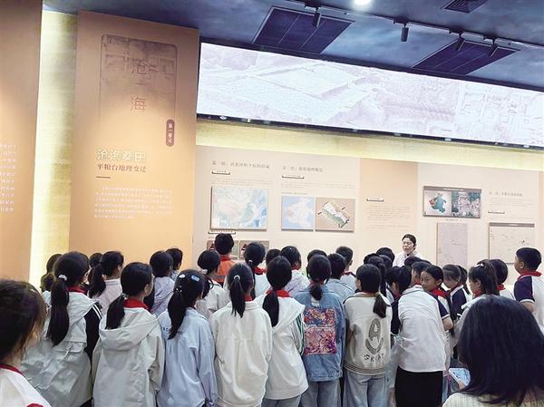 5月23日,學(xué)生在平糧臺(tái)古城遺址博物館內(nèi)參觀。當(dāng)日,淮陽一小學(xué)師生走進(jìn)平糧臺(tái)古城遺址,走進(jìn)這片承載著幾千年文明的土地,參加了一場(chǎng)別開生面的“行走的課堂——考古研學(xué)”活動(dòng)。