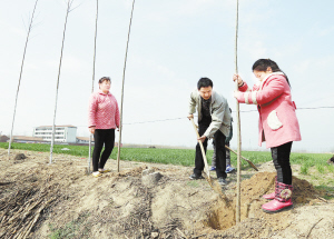 左圖 昨日,扶溝縣大李莊鄉(xiāng)高河沿村的群眾正在植樹。植樹節(jié)來臨之際,該縣各鄉(xiāng)鎮(zhèn)切實抓好以查漏補(bǔ)缺為主的植樹造林和美麗鄉(xiāng)村綠化工作,扎實有序推進(jìn)生態(tài)縣建設(shè)。(黃金峰 周運動 攝)