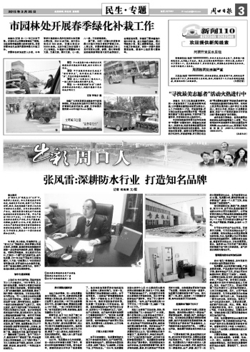 目前,張風(fēng)雷領(lǐng)軍的企業(yè)集團(tuán)正籌備擴(kuò)建新的廠房、引進(jìn)新的先進(jìn)生產(chǎn)線,向生產(chǎn)高科技含量的新型環(huán)保卷材進(jìn)軍。他誓言用未來5年或10年的努力,打造出一個(gè)由河南人主營(yíng)的國(guó)內(nèi)防水材料知名品牌。