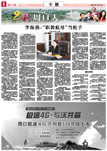 4月13日下午,在周口科技職業(yè)學(xué)院,記者采訪了周口“職教航母”的船長(zhǎng)和舵手——李海燕。