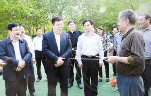 徐光一行又先后深入開(kāi)發(fā)區(qū)人民廣場(chǎng)、星龍華緣健身場(chǎng)所、融輝城健身活動(dòng)中心、商水縣夕陽(yáng)紅健身園、周口市體育中心等地實(shí)地察看各項(xiàng)體育健身運(yùn)動(dòng)設(shè)施建設(shè)進(jìn)展情況,聽(tīng)取籌備工作情況匯報(bào),了解場(chǎng)館布展和開(kāi)幕式準(zhǔn)備情況??吹揭患湫碌慕∩磉\(yùn)動(dòng)器材、一塊塊新近完善提升的健身場(chǎng)地,特別是正在進(jìn)行健身運(yùn)動(dòng)群眾的一張張笑臉,徐光滿意地點(diǎn)點(diǎn)頭,并來(lái)到市民中間,與大家親切交談,和正在健身的市民打乒乓球、試用健身器材,共同分享健身帶來(lái)的樂(lè)趣。徐光說(shuō),我市作為省十二屆“老健會(huì)”的承辦方,在時(shí)間緊、任務(wù)重、標(biāo)準(zhǔn)高、壓力大的情況下,各相關(guān)單位按照市委、市政府的安排部署,講政治、顧大局、做貢獻(xiàn),做了大量卓有成效的工作,可以說(shuō)我市的全民健身場(chǎng)所功能得到了完善、形象得到了提升,市民參與健身活動(dòng)的途徑和選擇更加方便多樣,參與健身的熱情更加高漲,市委對(duì)大家的工作是滿意的。但是,我們還要看到,我市的全民健身工作與群眾的需求還存在一定差距,必須進(jìn)一步加大投入力度,建設(shè)好、管理好、使用好相關(guān)體育健身設(shè)施,使之能夠更好地滿足群眾健身需求,服務(wù)百姓生活。