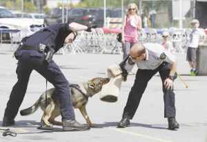 加拿大迎來全國警察周 5月9日, 在加拿大溫哥華地區(qū)的素里市,警察在警局開放日活動上向民眾示范警犬訓(xùn)練情況。為迎接一年一度的全國警察周,素里市皇家騎警總部當(dāng)日舉辦開放日活動,向民眾展示警方裝備及介紹警隊(duì)日常工作。新華社發(fā)