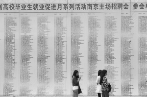 江蘇南京舉辦大學生專場招聘會 5月10日,在南京國際展覽中心,大學生在瀏覽用人單位招聘信息。當日,2015年江蘇省高校畢業(yè)生就業(yè)促進月系列活動南京主場招聘會在南京國際展覽中心舉行,千余家用人單位提供了3萬多個就業(yè)崗位,引來近4萬名大學生前來洽談應(yīng)聘。新華社發(fā)