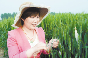 下圖:昨日,項城市農(nóng)科所技術(shù)人員正在進(jìn)行小麥雜交授粉。連日來,該所抓住小麥?zhǔn)诜燮诘那绾锰鞖?,組織技術(shù)人員開展雜交授粉實驗,確保小麥單產(chǎn)同步提高。(蔣樹保 攝)
