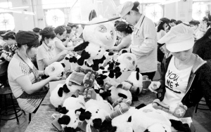 廣西各地就業(yè)呈現(xiàn)“鳳還巢” 廣西靈山縣婦女在生產(chǎn)外銷歐美的兒童玩具(4月29日攝)。近年來,廣西各地婦女就業(yè)呈現(xiàn)“鳳還巢”局面,不少在廣東、福建、浙江等地打工的人員,利用所學(xué)技能回鄉(xiāng)創(chuàng)業(yè)。抓住這一契機,廣西投入十幾億元建設(shè)200多個“巾幗科技示范基地”,為廣大婦女創(chuàng)業(yè)、就業(yè)搭建平臺。新華社發(fā)