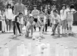 安徽亳州:留守兒童大學(xué)校園歡樂迎“六一” 5月24日,在安徽省亳州職業(yè)技術(shù)學(xué)院,幾名留守兒童在玩“保齡球”游戲。當(dāng)日,安徽省亳州職業(yè)技術(shù)學(xué)院邀請譙城區(qū)牛集鎮(zhèn)安溜小學(xué)50多名留守兒童來到大學(xué)校園,開展“放飛夢想迎六一”主題活動。大學(xué)生與孩子們一起進行了各種趣味游戲,讓孩子們提前過了一個開心的“六一”兒童節(jié)。新華社發(fā)