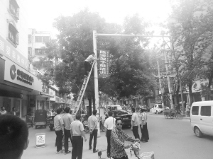 文明路亂裝亂掛的燈箱、條幅廣告嚴(yán)重影響城市形象,被川匯區(qū)城管人員依法強制拆除。