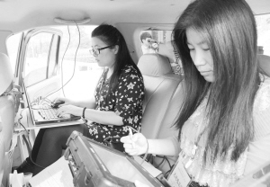 圖④沈丘縣三名考生準(zhǔn)備乘坐“志遠(yuǎn)愛(ài)心車隊(duì)”的車輛前往考點(diǎn)。
