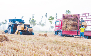 今年“三夏”,沈丘縣堅持做到進(jìn)地作業(yè)機械全部安裝秸稈粉碎還田裝置,一律執(zhí)行“低留茬、細(xì)粉碎”作業(yè),對不符合作業(yè)要求的機械,及時制止并督促就地整改,達(dá)不到標(biāo)準(zhǔn)要求的地塊,責(zé)成村級組織破茬耕翻,確保秸稈粉碎還田質(zhì)量。圖為付井鎮(zhèn)境內(nèi)一輛安裝秸稈粉碎還田裝置的聯(lián)合收割機正在田間作業(yè)。(肖飛 攝)