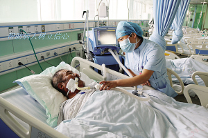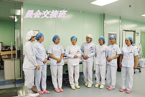當(dāng)然,護(hù)理工作并非一帆風(fēng)順。眾所周知,ICU收治的都是重癥患者,患者大多數(shù)都有精神障礙,譫妄、昏迷、煩躁不安等狀況很常見,這就需要護(hù)士們充滿耐心和愛心。張衛(wèi)華以實際行動詮釋人間大愛。2014年8月,科室里來了一名Ⅱ級肝性腦病的男性患者,已經(jīng)精神錯亂且不認(rèn)人,行為非常危險。由于該病不能使用鎮(zhèn)靜藥物,當(dāng)責(zé)任護(hù)士靠近患者時,患者拿起床頭柜上的一個玻璃瓶向護(hù)士砸去。作為護(hù)士長的張衛(wèi)華見此情景,臨危不懼,用自己的身軀保護(hù)責(zé)任護(hù)士。只聽見啪的一聲,鮮血順著她的臉頰流了下來,可她還是慢慢走向那名患者,輕聲向他解釋情況以安撫其情緒。患者的情緒漸漸地穩(wěn)定下來,她才去處理傷口,并輕松地說:“只要沒傷著病人就好?!庇幸淮?,科室里來了一名心梗住院的老人,老人的孩子都在外地,得知老人生病住院也沒趕回來照顧,甚至連一句問候都沒有。老人除了要忍受著病痛的折磨,還要忍受對孩子們的思念。張衛(wèi)華見此情景,非常心疼,為安慰老人,上班期間她都會去陪老人聊天,哄老人開心。老人吵著不舒服的時候,張衛(wèi)華用藥緩解,同時耐心安撫老人。晚上老人因為孩子的事情,會像一個小孩兒一樣哭泣不止,張衛(wèi)華心疼地陪在老人身邊,一遍又一遍地安慰說:“別害怕,我在您身邊,我就是您的女兒。”