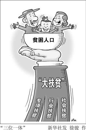 “扶貧開發(fā)是全黨全社會(huì)的共同責(zé)任,要?jiǎng)訂T和凝聚全社會(huì)力量廣泛參與。要堅(jiān)持專項(xiàng)扶貧、行業(yè)扶貧、社會(huì)扶貧等多方力量、多種舉措有機(jī)結(jié)合和互為支撐的‘三位一體’大扶貧格局?!绷?xí)近平總書記強(qiáng)調(diào)。 新華社發(fā)