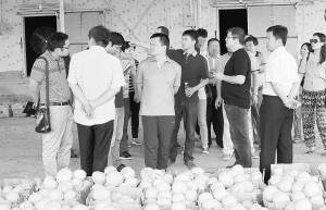 本報訊 (記者 王泉林 通訊員 史曉康 郭威) 6月16日至17日,北京一畝田集團(tuán)總裁鄧錦宏率領(lǐng)公司高層管理人員近30人到扶溝考察果蔬生產(chǎn)和銷售情況,并就建立公共交易場所等事宜與當(dāng)?shù)攸h政領(lǐng)導(dǎo)、蔬菜園區(qū)經(jīng)營者、果蔬經(jīng)紀(jì)人進(jìn)行深入交流。