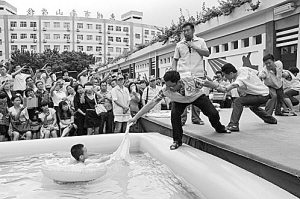廣東省惠州市教育局高度重視學(xué)校和學(xué)生的安全管理工作,在全市預(yù)防學(xué)生溺水安全專(zhuān)項(xiàng)活動(dòng)中,創(chuàng)新教育形式,開(kāi)展防溺水“體驗(yàn)式”教學(xué)。圖為惠州市教育局在南山學(xué)校舉辦全市中小學(xué)防溺水體驗(yàn)式教學(xué)觀摩現(xiàn)場(chǎng)會(huì),惠州志愿者救撈隊(duì)示范通過(guò)立式人鏈智救溺水者。 袁曙文 攝