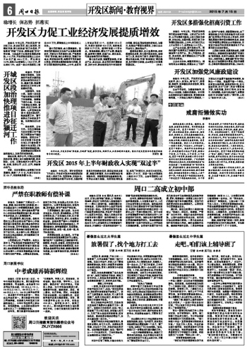 開發(fā)區(qū)2015年上半年財政收入實現(xiàn)“雙過半”