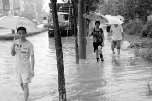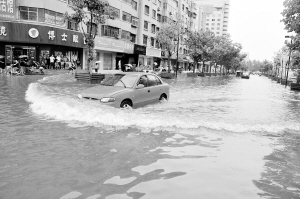 淮陽(yáng)城區(qū)部分路段積水成災(zāi) 晚報(bào)記者 杜欣 攝