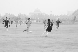 與此同時,體育館東側(cè)足球場上則上演著新疆競技隊和撫順新野隊的精彩對決。身材高大的新疆競技隊隊員的表現(xiàn)搶眼,讓周口球迷大開眼界。